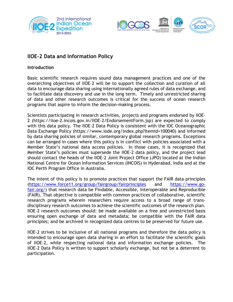 IIOE-2 Data & Information Policy Document | 2023 | |