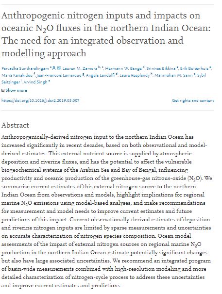 18 | Anthropogenic nitrogen inputs and impacts on oceanic N2O fluxes in the northern Indian Ocean: The need for an integrated observation and modelling approach | 2019 | ![]() |