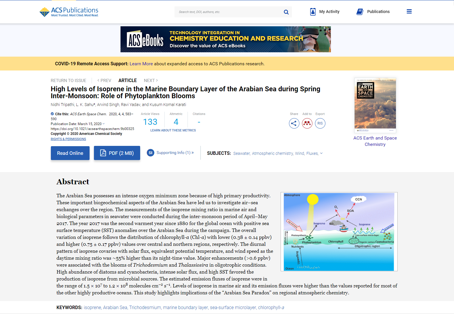 13 | High Levels of Isoprene in the Marine Boundary Layer of the Arabian Sea during Spring Inter-Monsoon: Role of Phytoplankton Blooms | 2020 | ![]() |