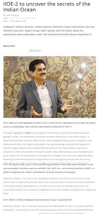 IIOE-2 to uncover the secrets of the Indian Ocean. Geography and You; Issue: Deep Sea Exploration,16 th August, 2018 | 2018 | |