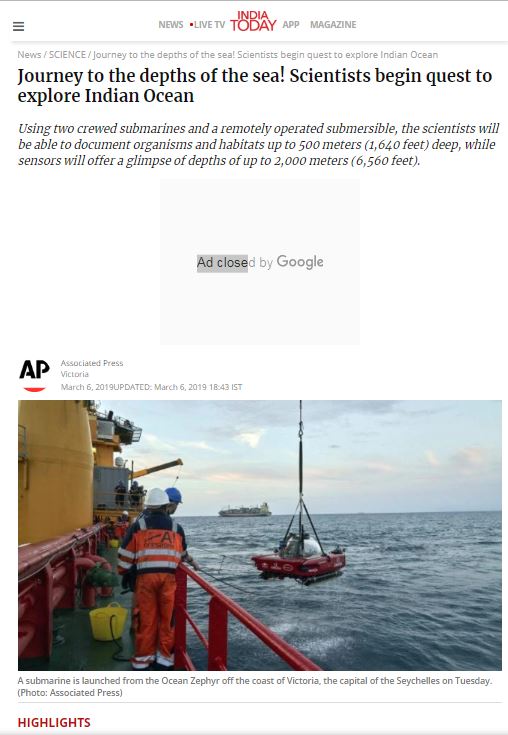 Journey to the depths of the sea! Scientists begin quest to explore Indian Ocean | 2019 | |